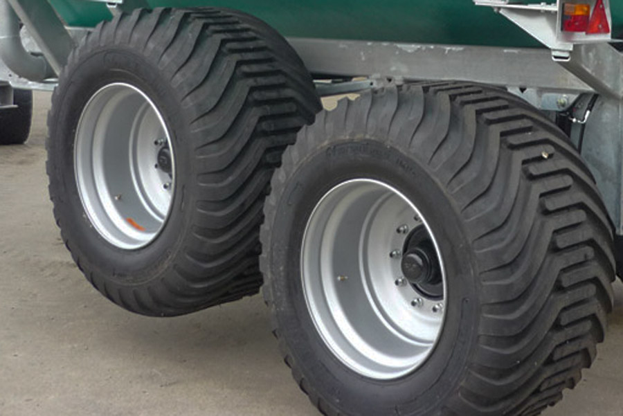 Moi gjødselvogner kan leveres med et bredt spekter av forskjellige hjul-dimensjoner. Felles for dem alle, er at det er Radial-hjul, som tåler bruk med svært lavt lufttrykk. Dette medfører redusert jordpakking.