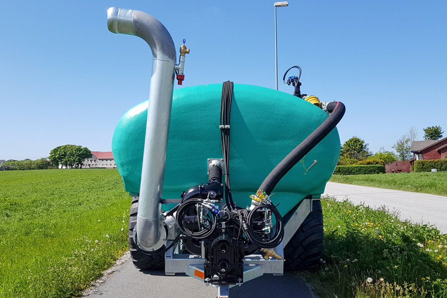 Ved bruk av vår høytrykkspumpe, kan vogna benyttes som pumpestasjon under kjøring med slepeslange. Enten man velger en spredebom eller en vanlig spreder i enden av slangen, er dette et stadig mer brukt alternativ. Dette er også ideelt med tanke på rengjøring med vann av slanger og spredeutstyr etter bruk.