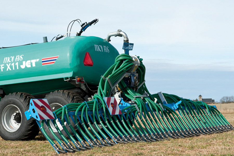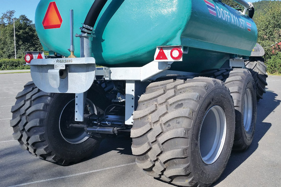 Moi gjødselvogner kan leveres med et bredt spekter av forskjellige hjul-dimensjoner. Felles for dem alle, er at det er Radial-hjul, som tåler bruk med svært lavt lufttrykk. Dette medfører redusert jordpakking.