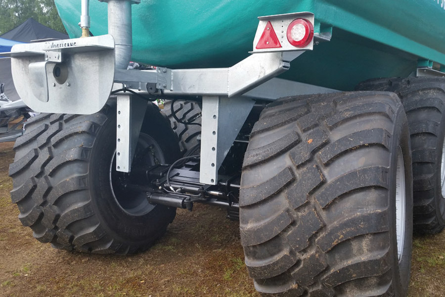 Flere og flere av våre kunder velger nå boggiløft på sin vogn. Med boggiløft har du anledning til å flytte store mengder vekt over på traktorens bakhjul i bratte stigninger. Du kan også løfte det fremre eller bakre hjulparet for smidig kjøring for eksempel ved manøvrering inn mot påfyllingssted. Boggiløft settes i flyt under normal kjøring på eng eller langs vei.
