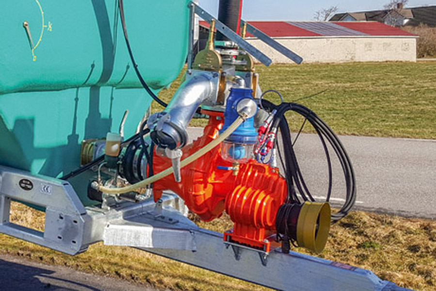 Ved bruk av vår høytrykkspumpe, kan vogna benyttes som pumpestasjon under kjøring med slepeslange. Enten man velger en spredebom eller en vanlig spreder i enden av slangen, er dette et stadig mer brukt alternativ. Dette er også ideelt med tanke på rengjøring med vann av slanger og spredeutstyr etter bruk.