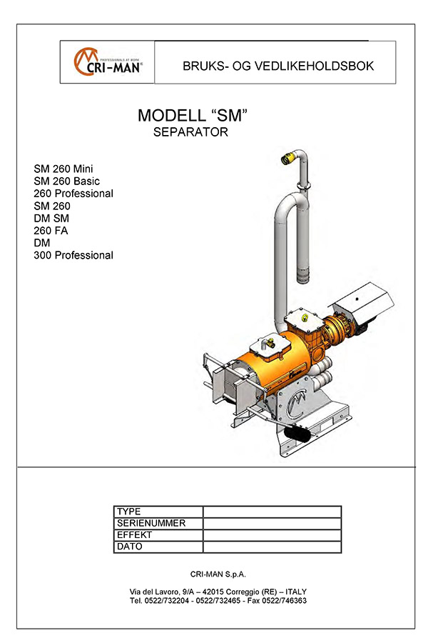 Cri-Man er en anerkjent produsent av kvalitets- utstyr til gjødsel og biogass-anlegg. Cri-Man separatorene har markedets største kapasitet. Brukes både i landbruk og næringsmiddelindustrien. Separatorene er utviklet for bruk i nordiske forhold. Inntak under med gjennomstrømning som hindrer tetting, og dreneres for frost.
